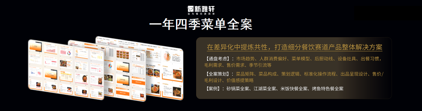 在高質(zhì)價(jià)比產(chǎn)品的基礎(chǔ)之上,新雅軒還為客戶提供【一年四季菜單·產(chǎn)品整體解決方案】,與客戶共創(chuàng)差異化產(chǎn)品及方案創(chuàng)新,協(xié)同餐飲品牌提高對市場的響應(yīng)速率,更快更好地滿足品牌消費(fèi)者的多元化需求,幫助餐飲品牌持續(xù)提升競爭力。