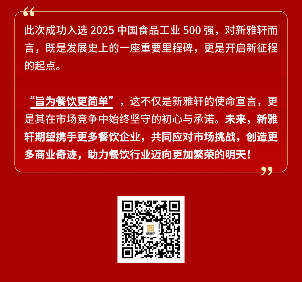 新雅軒榮耀登榜2025中國(guó)食品工業(yè)500強(qiáng):以供應(yīng)鏈創(chuàng)新力引領(lǐng)行業(yè)新未來!